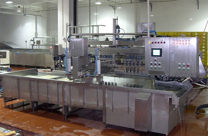 自動(dòng)進(jìn)出系統(tǒng)豎屜連續(xù)回轉(zhuǎn)式熱殺菌及冷卻水槽是我公司生產(chǎn)的自動(dòng)化豆制品設(shè)備之一。